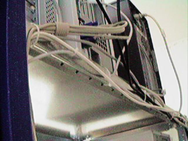 Note how the cables and trunks can be affixed to the shelf thanks to the holes at the shelf edges. This is invaluable.