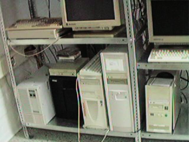 Bottom row, left to right: yet another UPS, sco, two customer servers, george.